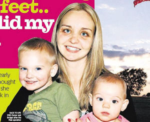 2005年10月9日,時年21歲的美國姑娘莎娜·里查森在阿肯色州高空跳傘時,因主副降落傘都無法打開,她就像秤砣一樣從3000多米高空墜落地面。臉先著地的莎娜奇跡般地沒有摔死,就連腹中2周大的胎兒也安然無恙!孩子安然出生后6周,莎娜便重返藍天再次跳傘。3年后,莎娜又增添了一個寶寶,并于去年12月通過第6次整容手術(shù)重獲了“新臉”。