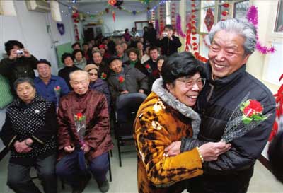 “親愛(ài)的,感謝你!”昨天下午,東城區(qū)史家社區(qū)居委會(huì)內(nèi),近20對(duì)年近古稀的老夫妻聚在一起,其中4對(duì)已過(guò)金婚。他們學(xué)習(xí)牽手、擁抱、送玫瑰,“惡補(bǔ)”情人節(jié)知識(shí)。相濡以沫的老夫妻們,第一次嘗試開(kāi)口向?qū)Ψ酱舐曊f(shuō)愛(ài),雙方都不好意思地扭過(guò)頭,現(xiàn)場(chǎng)一片掌聲。