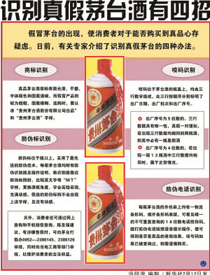 據(jù)她介紹,茅臺酒廠目前在北京專設(shè)了多名打假人員,通過明察暗訪的方式,尋訪假酒的線索。一旦發(fā)現(xiàn)假酒,將舉報工商部門或以法院起訴的方式“打假”。她說,目前打假人員還是主要針對高檔餐廳、酒店和超市進行打假。對一些小的煙酒店所賣的假茅臺酒,他們暫不作為“打假”重點。莫律師承認,目前在市場上存在著大量假茅臺酒,但針對“出了貴州,就喝不到真的茅臺”和“茅臺酒中80%是假酒”的傳言,她表示假酒并無傳言中的那樣多。