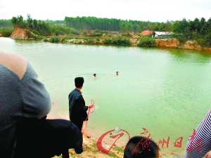 水塘的水深約10米,黃巨在水中抓住黃佳億后,奮力把他往岸上推,岸上的同伴見(jiàn)狀,趕忙合力將被推到岸邊的黃佳億拉了上來(lái),并忙將一條長(zhǎng)竹棍伸給水中的黃巨,可因他當(dāng)時(shí)已筋疲力盡,最終還是沉了下去……