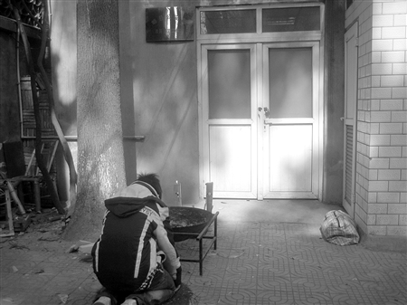 昨日春光燦爛,肖林親友們卻沒心情享受美景,他們齊齊來到烈士陵園等待法醫(yī)鑒定的結果。法醫(yī)鑒定工作室門外,燃著兩根紅燭,擺了臺供燒紙錢的鐵鍋,一名身著運動服的少年朝屋里躬身行禮,然后長跪在草墊上淚流滿面。他是肖林的兒子肖理,年僅15歲。僅在一夜之間,他就不得不面對突然失去父親的現(xiàn)實。