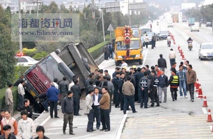 “太慘了……”一名目擊者向記者描述,盡管事情過去了一兩個(gè)小時(shí),但他還是心有余悸。他說,事發(fā)時(shí)正是附近嶺腳中學(xué)的放學(xué)時(shí)間,這輛滿載沙子的貨車從國道飛速駛來,先是與一輛客車側(cè)面擦了一下,接著車子就失控了,繼續(xù)往路邊奔去。一名依姆騎著三輪車載著一車孩子沒能避開,眼睜睜被卷入車輪當(dāng)中。車上一個(gè)十來歲的女孩當(dāng)場身亡,騎車依姆雙腳被當(dāng)場軋斷,而另一名女孩摔在地上動彈不得。但直到這時(shí),車子還是沒能剎住,徑直沖向路邊,直到卡死在排水溝里,而三輪車就被運(yùn)沙車連推帶卷一直沒能離開車底。