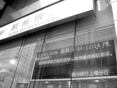 見到如此場面,杭州銀行決定提前1小時開始派發(fā)。杭州銀行上海分行新聞發(fā)言人邵燕敏告訴記者,為避免現(xiàn)場混亂,銀行每次允許10人進入現(xiàn)場并憑身份證領(lǐng)取消費券。但在派發(fā)開始半個多小時后,銀行工作人員通知排隊者,旅游券就快領(lǐng)完,排在后面的市民可以不用再等了。