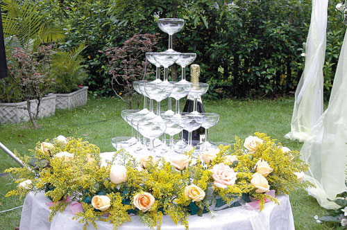 觀禮場(chǎng)旁邊,例牌要準(zhǔn)備一些簡(jiǎn)單的餐點(diǎn)供親友們享用。至于浪漫的泡泡機(jī)、現(xiàn)場(chǎng)演奏的小樂(lè)隊(duì),就可以視乎新人們的需要來(lái)添加或者忽略。