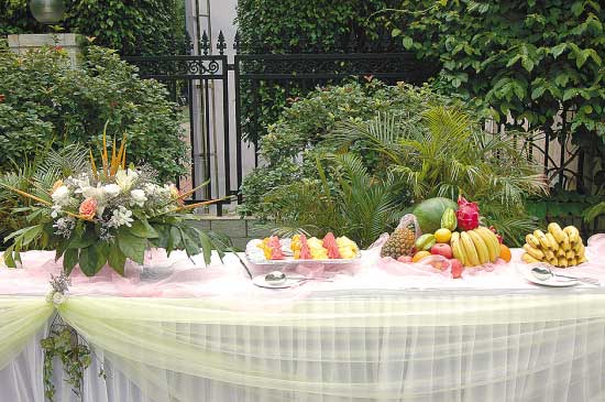 草坪婚禮通常要選擇一片綠地或花園,時(shí)間會(huì)在午后和晚宴之前。在寸金尺土的廣州城內(nèi),可以舉辦草坪婚禮的地方并不多,只有白天鵝賓館、幾家星級(jí)酒店和地處二沙島、五羊新城或者珠江新城等擁有綠地較多的西餐廳可以進(jìn)行。而且,所選的地點(diǎn)要靠近晚上婚宴之所,免除新人奔波之苦。帶花園或綠地的西餐廳或者酒店,都是新人們的首選。