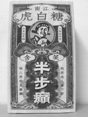 而在“含笑半步癲”糖的背面更寫著:“傳說中的含笑半步癲,是以蜂蜜、川貝、桔梗,加上天山雪蓮配制而成。今人糖白虎改以跳跳巧克力取而代之,不需冷藏,也沒有防腐劑。除了生性猛烈之外,味道還很好!實在是居家旅行,整人自娛,必備良品!”——這段產(chǎn)品解釋更是與《唐伯虎點(diǎn)秋香》中的臺詞不謀而合。