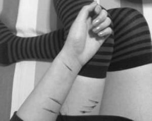 隨后,網(wǎng)友“popoer”上傳了七八張自己割腕或劃腿的圖片。從圖片里可以看出,女孩身體的多個部位劃有許多傷痕,有的圖片甚至血肉模糊。其中一張圖片還是女孩正拿著一把工具刀扎入自己的皮膚里,整組圖片不堪入目,讓觀看者感覺心里冰涼。2月18日,該網(wǎng)友再度上線,補充了一段自殺過程中自己的心理變化:“站在光亮的玻璃鏡前……突然有種昏眩的感覺,一滴,一滴,滴答,滴答,在地板……”血腥的文字,看了讓人不寒而栗。