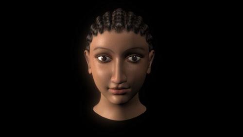 法醫(yī)人類學家卡羅琳·威爾金森借助電腦技術(shù)復原出阿爾西諾頭像。“她前額較長,這一特征在古埃及人和非洲黑人中較為常見。這顯示出她的混合血統(tǒng)!