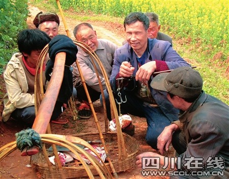 “割肉喲——”昨日上午11點(diǎn),一陣抑揚(yáng)頓挫的吆喝聲,從遂寧市安居區(qū)西眉鎮(zhèn)一個(gè)菜花飄香的小山村里飄蕩而出,但你絕對(duì)想不到的是吆喝賣肉的居然是位盲人。他叫楊中模,67歲,只見他挑著豬肉擔(dān)子、手拿竹竿、小心翼翼地在鄉(xiāng)間小道上前行。他雖然看不見,但他割肉、稱秤、算賬、認(rèn)錢、記賬這五大功夫堪稱精、準(zhǔn)、狠、牛,因此又被網(wǎng)友稱為“五牛牌”賣肉翁。