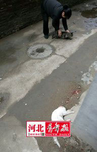 從23日晚上開(kāi)始,陸續(xù)有石市范東宿舍的居民被橫在一棟單元樓門(mén)口的貓尸嚇住,墊著報(bào)紙的貓頭不久也被人們發(fā)現(xiàn)。驚恐之余,居民們?nèi)呵榧,“殺貓兇手”也引發(fā)人們的種種猜想。