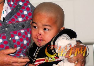 “小孩子現(xiàn)在大了,常聽(tīng)別人議論,也已經(jīng)明白自己的傷是怎么來(lái)的,”小祖爸爸說(shuō),孩子雖然面部有缺損,但十分懂事,每次做手術(shù)都不哭不鬧,相當(dāng)配合。(張小磊 郭梅美 劉文勇 李巖)