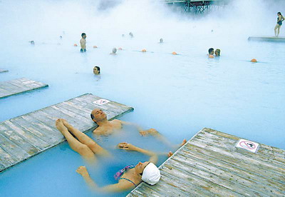 冰島人喜歡露天游泳,當然是在溫泉里游。大多數(shù)冰島人出生沒幾個月,就被父母帶到溫泉學游泳。露天游泳池是冰島最熱門的社交場所。人們在這里會碰到政客、企業(yè)家和藝術家等。人們脫去正裝只穿泳衣時,沒有職業(yè)和身份的區(qū)別,還原了人的本色,所以無論談正事還是聊天,每個人的心態(tài)都很放松,情感更容易溝通。在冰島,溫泉成了青年男女談戀愛的最佳場所,在露天溫泉池里談戀愛不但可以讓戀人們坦誠相對,而且那熱騰騰的溫泉水還可以為戀人們的感情加溫。記者的冰島朋友格魯克說,“冬天來冰島旅游,泡溫泉浴是一項必備的項目! 格魯克介紹說,冰島溫泉浴不象芬蘭浴那樣冰火兩重天,即桑拿到“透熟”的狀態(tài)就一頭扎進接近零度的冰水中,刺激太大,非常危險。冰島溫泉浴主要是采取逐漸升高溫度進入三個漸進加熱的程序,這對皮膚和心血管都有保護作用。