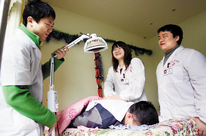 去年12月,劉瑞和周陽回到重慶,開始四處尋找合適的鋪面,“我們遇到很多好心人,知道我們是大學生,都是盲人,很多人主動站出來幫我們!敝钢40多平方米的小診所,劉瑞說,房東王艷在從朋友口中知道了三人的遭遇后,主動把自己的房子低價租給他們,并免去前三個月的房租,鼓勵三人創(chuàng)業(yè)。