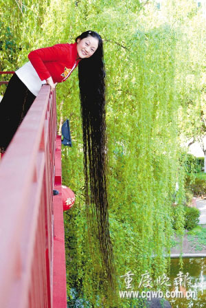 程世瓊身高1.56米,頭發(fā)垂下后,幾乎一半都拖在地上。每天早上,她要花半個(gè)小時(shí)將頭發(fā)辮好,盤在頭上,晚上睡覺(jué)時(shí)再解開。最麻煩的是每周洗一次頭發(fā)。為此,她專門準(zhǔn)備了一個(gè)大盆子,洗時(shí),將頭發(fā)全部放在盆里,洗干凈后,用自己配制的藥水浸泡至少5分鐘。
