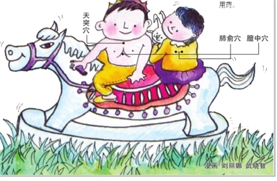 中醫(yī)主任醫(yī)師尹志超介紹,人體的穴位是神經(jīng)末梢密集或神經(jīng)干線經(jīng)過的地方,因此按摩這些穴位可以起到疏通經(jīng)絡(luò)、治療疾病的效果。對于用藥極為敏感的兒童,特別是兩歲以下的寶寶來說,按摩三個穴位可以緩解感冒癥狀。這三個穴位分別是:天突穴、膻中穴和肺俞穴。