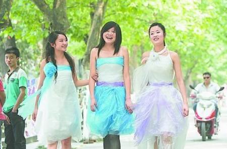 昨日中午,成都理工大學(xué)第四教學(xué)樓旁擺起了展臺,七名身著用藍(lán)、黑、白相間的塑料薄膜做成的“塑料時(shí)裝”的女學(xué)生登場,引來了陣陣掌聲。據(jù)介紹,這些學(xué)生所穿的“塑料時(shí)裝”全部采用日常生活中常見的塑料,通過他們自己獨(dú)立設(shè)計(jì)成衣服,向現(xiàn)場的觀眾宣傳環(huán)保,號召師生們盡量采用環(huán)保制品,愛護(hù)我們共同的家園。(張歐)
