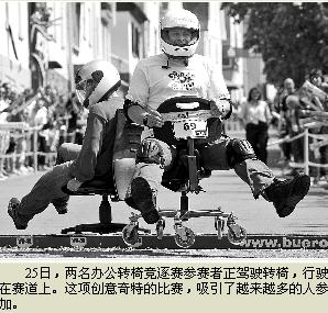 辦公轉(zhuǎn)椅競逐賽在瑞士誕生,巴特柯尼希鎮(zhèn)一家青年俱樂部的成員將這項(xiàng)趣味運(yùn)動(dòng)略加變通后,于去年在鎮(zhèn)上舉辦了首屆比賽。引得世界各地的媒體競相報(bào)道。