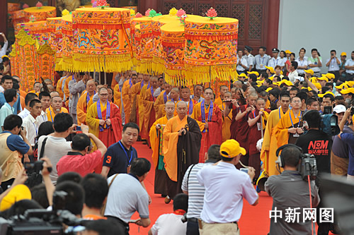 中新網(wǎng)4月28日電 近日,海南省澄邁縣千年古剎永慶寺,第七屆盈濱龍水節(jié)暨永慶寺開光法會(huì)在此舉行。海內(nèi)外53位高僧大德聯(lián)袂開光。海南省政協(xié)主席鐘文,省委常委、省委秘書長(zhǎng)許俊,副省長(zhǎng)符躍蘭,中國佛教協(xié)會(huì)、山西省有關(guān)領(lǐng)導(dǎo)以及主辦方代表山東魯能集團(tuán)有限公司副總裁趙健一行、澄邁縣委、縣政府領(lǐng)導(dǎo)與數(shù)萬信眾居士共同見證了這一佛門盛事。