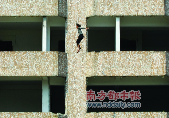 “我們一起跳吧”,當(dāng)端坐在莞城可園南路一棟6層拆遷樓頂?shù)呐诱f完這話后,雙手張開,縱身跳下。時(shí)間仿佛定格在昨日上午9點(diǎn)43分。幾秒鐘后落在充氣墊的女子微微抬了抬腳,現(xiàn)場(chǎng)有人喊出“她還活著”。