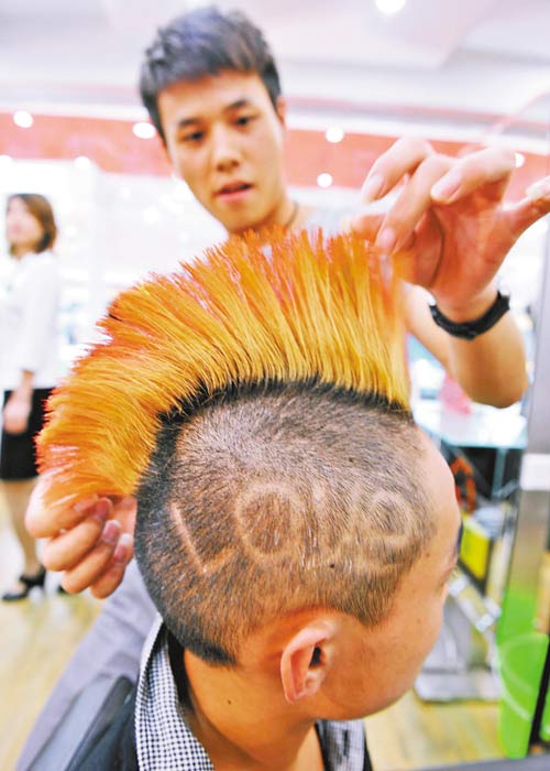 鄧明輝說,他是東北人,來寧波工作兩個(gè)月了。“我還沒有女朋友,過兩天就是七夕了,中國的情人節(jié),所以,我就想來剃個(gè)愛情頭,希望能在七夕找到自己的另一半!(記者盛高攝)