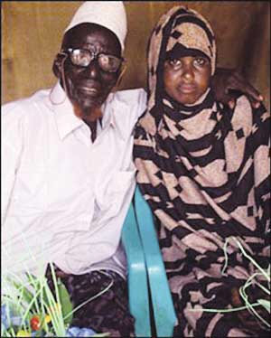 揚子晚報消息,據(jù)英國媒體30日報道,現(xiàn)年112歲的索馬里老漢阿赫邁德·穆哈邁德·多爾一生總計結(jié)過5次婚,并擁有總計114名子女和孫輩。但令人目瞪口呆的是,日前多爾又舉行了第6次婚禮,娶了比他小95歲的17歲少女薩菲婭·阿卜杜勒。盡管“新郎”多爾年齡大得足以做“新娘”薩菲婭的高祖父(爺爺?shù)臓敔?,但多爾竟然表示婚后將和新婚妻子薩菲婭生育更多兒女。