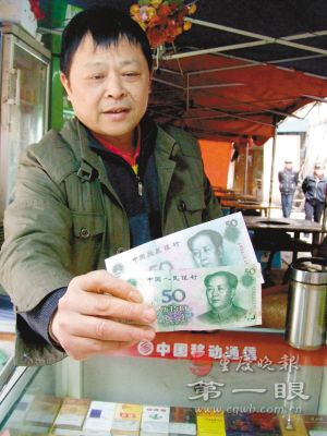 現(xiàn)在有假鈔替代真鈔的,但你見過用冥幣來冒充人民幣的嗎?昨日,渝中區(qū)響水橋6號煙攤老板王國華就遇到了這件事,“經(jīng)常收錢,一摸就認(rèn)出來了,但冥幣做成人民幣的樣子,面值小的,不注意還真容易弄混。”王國華說。