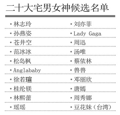 盡職的實(shí)習(xí)生同學(xué)們經(jīng)過幾個(gè)星期來的摸底調(diào)查,得出20大候選名單,其中,有大家熟悉的志玲姐姐、蒼井空老師,也有令人有些意外的孫燕姿、周迅同學(xué),詳見20大候選名單。