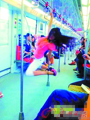 近日,一篇名為《南京地鐵二號線粉紅女郎大秀鋼管舞》的帖子出現(xiàn)在各大論壇,帖子稱,6月1日下午3點(diǎn)多,南京地鐵二號線經(jīng)過學(xué)則路站時,車廂內(nèi)一名粉紅女郎突然站起身,走到車廂一根扶欄下,旁若無人的大秀“鋼管舞”。