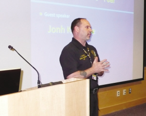 舊金山加大犯罪分析專家John Racine現(xiàn)場介紹安全常識,比如“雙肩背書包不可單肩背”,并當(dāng)場扮演歹人如何能輕而易舉搶走學(xué)生肩頭的背包。在街頭行走時要顯示自信心,萬一感覺有人尾隨時,可以采取穿越馬路和到鄰近商店求助報警的方式來保護(hù)自己。(劉海平)