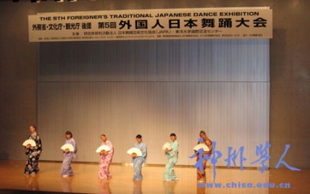 一年一度的“外國人日本舞蹈大賽”于近日在日本東京市東洋大學(xué)舉行。來自16個(gè)國家的48名選手參加了這次的日本舞蹈大賽。在東京大學(xué)攻讀博士學(xué)位的中國留學(xué)生孫敏華和趙丹丹代表日中友好會(huì)館后樂寮參加了這次日本舞蹈大賽,他們參加的日本舞蹈表演作品是“潮來出島”。