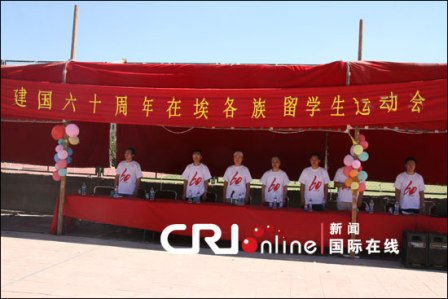 “建國60周年在埃各族留學(xué)生運(yùn)動會”25日在埃及艾因夏姆斯大學(xué)工程系體育場舉行,中國駐埃及使館王克儉公參等出席運(yùn)動會開幕式并觀看比賽。