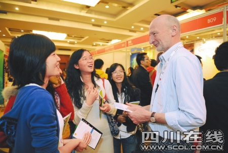 中國國際教育展組委會展覽總監(jiān)關(guān)宏告訴記者,本次成都巡展最大的特點是規(guī)格更高,體現(xiàn)出濃郁的國家級特點,有來自英國、德國、法國、馬來西亞、新加坡等8個國家的駐華大使館和海外權(quán)威教育機構(gòu),在現(xiàn)場接受留學方面的各種咨詢!斑@種由政府教育部門出面解答的形式,可以更準確地傳達留學政策,讓家長在選擇留學國家和學校時更理性!