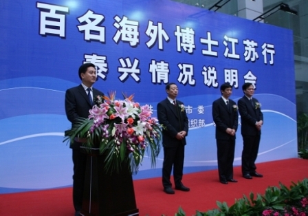 14日,江蘇省泰興市又一次迎來了“百名海外博士江蘇行”活動(dòng)的海外博士們。中共泰興市委、市政府對遠(yuǎn)道而來的海外博士們表示熱烈歡迎和誠摯的感謝。江蘇省人力資源和社會(huì)保障廳副廳長陳勵(lì)陽,中共泰興市委書記、市人大常委會(huì)主任張兆江,中共泰興市委副書記、市長高亞梓等領(lǐng)導(dǎo)出席了此次泰興說明會(huì)和項(xiàng)目洽談會(huì)。