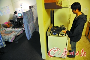與李俊強(qiáng)同住的小伙子叫郭郭。他家境一般,選了這個(gè)套房的客廳作為暫居之地!拔覜](méi)有想過(guò)留在這里,也許畢業(yè)了就回國(guó)吧,工程藝術(shù)這個(gè)專業(yè)在國(guó)內(nèi)很容易找到一份好工作的!惫巧綎|人,女朋友還在家鄉(xiāng),每天他都要通過(guò)網(wǎng)絡(luò)和女友通話,而剩下的時(shí)間基本用在學(xué)習(xí)上了。
