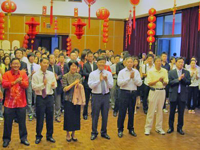 與會(huì)的中資企業(yè)代表和留學(xué)生表示,來(lái)到使館就象回到了家,使館準(zhǔn)備的團(tuán)圓飯,讓大家感到了家的溫暖。來(lái)賓們?cè)谌谇⒌臍夥罩杏H切交談,互賀新春,在使館這個(gè)大家庭里共渡了一個(gè)美好的夜晚。