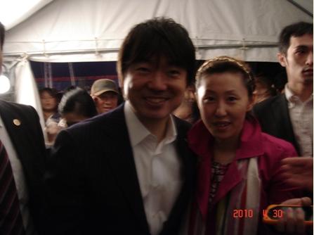 在大阪日本橋開辦四川料理店鳳家的中國女留學(xué)生汪哲有幸接到了邀請函,不但進入了會場,還坐在橋下知事很近的座位上,演出結(jié)束后,汪哲突然產(chǎn)生了一股勇氣,來到了橋下知事的身邊,她大膽地拉住了橋下知事的手,向橋下知事介紹了自己在大阪宣傳上海世博會的努力,橋下知事也被上海世博會的慶祝氣氛深深地感染了,顯得很有興趣地聽完了汪哲的自我介紹;接著汪哲乘勝追擊邀請橋下知事與她合影留念,并留下了珍貴的紀念照片。