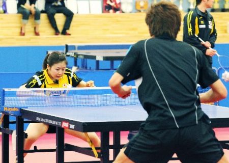 中新網(wǎng)5月7日電 據(jù)日本新華僑報(bào)網(wǎng)報(bào)道,為獲得即將在俄羅斯莫斯科即將開幕的第50屆世界乒乓球錦標(biāo)賽參賽權(quán),5月6日,日本選手在東京味之素國家訓(xùn)練中心,舉行了模擬假想敵的公開訓(xùn)練。其中,能說一口流利的漢語,深受中日人民喜愛的日本乒乓名將福原愛,則視羅馬尼亞一號(hào)主力丹妮拉·多德安為預(yù)選賽階段最大的對(duì)手。為此,她選擇了一名男陪練,專門模仿丹妮拉·多德安的打法。身高170cm的丹妮拉·多德安擅長削球,過去曾在比賽中與身高僅有156cm的福田愛交過手,福田愛的成績是3勝兩敗。