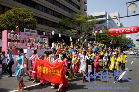 5月3日,福岡市一年一度的“博多打鼓節(jié)”正式拉開帷幕。九州地區(qū)中國學友會派出了來自九州大學、九州女子大學、九州外國語學院、福岡工業(yè)大學等63名同學組成的“中國留學生方隊”參加此次活動。