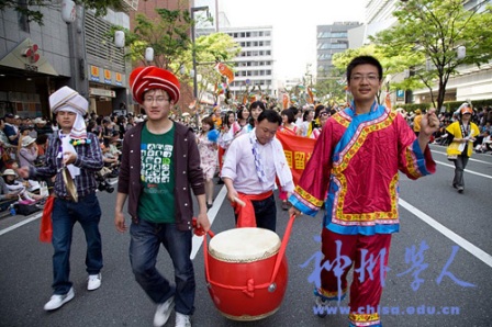 游行的方隊從福岡市冷泉公園出發(fā),途徑中央主席臺,一路走到位于天神中央公園的終點站,多次贏得觀眾的熱烈掌聲。雖然天氣很熱,但是同學們熱情高昂,團結(jié)奮進,九州地區(qū)學友會也提供了堅強有力的游行綜合保障工作,中國駐福岡總領(lǐng)事館為九州地區(qū)學友會提供了中國少數(shù)民族服裝、大鼓和彩獅,整個游行取得了圓滿的成功。通過此次活動,同學們感受到了日本節(jié)日的氣氛,體驗了日本的傳統(tǒng)文化。同時,“中國留學生”方隊鮮艷的少數(shù)民族服裝、方隊和舞獅的精彩表演,向日本觀眾宣傳了中華民族的傳統(tǒng)文化,也充分展現(xiàn)了中國留學生的風貌。
