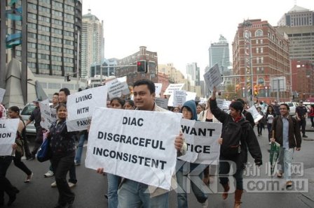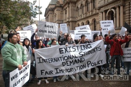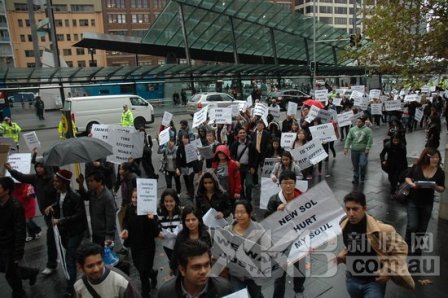 中新網(wǎng)6月7日電 據(jù)澳大利亞新快網(wǎng)報道,為抵制聯(lián)邦移民部推出的新的職業(yè)技術(shù)清單(SOL),以及抗議所受的不公平對待,近200名國際學(xué)生3日冒雨走上悉尼街頭,高舉標(biāo)語振臂疾呼。不過,一名來自私立學(xué)校的中國女生Annie表示,“我原以為人會更多的”,可謂一針見血。