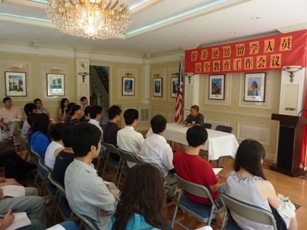會上,駐美使館教育處張靜安一等秘書首先通報(bào)了當(dāng)前中國留學(xué)人員面臨的安全形勢,分析了留學(xué)人員中發(fā)生的車禍等人身意外事故案例及特點(diǎn),介紹了使館教育處、領(lǐng)事部等部門維護(hù)留學(xué)人員的合法權(quán)益、及時(shí)處理留學(xué)人員安全事件的情況,并就今后做好留學(xué)人員安全教育工作提出了工作計(jì)劃。
