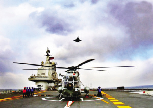隨后,網(wǎng)友曝光了一組“遼寧艦”照片,從中可以發(fā)現(xiàn)殲-15艦載戰(zhàn)斗機(jī)已在“遼寧艦”上實(shí)現(xiàn)觸艦復(fù)飛,殲-15處于“遼寧艦”的降落跑道上方。此外,直8艦載直升機(jī)降落在航母甲板上,引導(dǎo)直升機(jī)著艦的艦員穿上了帶顏色標(biāo)記的“馬甲”,其中,藍(lán)色馬甲背后標(biāo)有“四站”字樣,業(yè)內(nèi)人士介紹,“四站”指的是航空勤務(wù)中最重要的制氧站、充氧站、冷氣站和充電站。(央視)