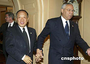 正在華盛頓出席美國前總統(tǒng)里根追悼儀式的中國國家主席胡錦濤特使、外交部長李肇星十一日上午會見了美國國務(wù)卿鮑威爾。李肇星高度評價里根為發(fā)展中美關(guān)系作出的貢獻。雙方重申了在臺灣問題上的立場。作者:余東暉