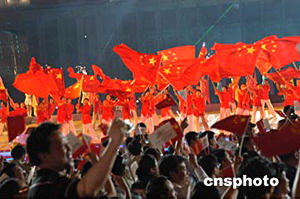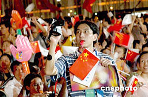 七月一日夜,比三十八度氣溫更沸騰的是廣州國際會(huì)展中心廣場(chǎng),當(dāng)亞奧理事會(huì)于北京時(shí)間今晚八點(diǎn)宣布:廣州獲得二0一0年第十六屆亞運(yùn)會(huì)主辦權(quán)!會(huì)展中心《中國心亞運(yùn)情》文藝焰火晚會(huì)現(xiàn)場(chǎng)霎時(shí)禮花飛天、紅旗招展、笑靨飛揚(yáng),在這仲夏之夜,廣州實(shí)現(xiàn)了亞運(yùn)之夢(mèng),廣州沸騰了!