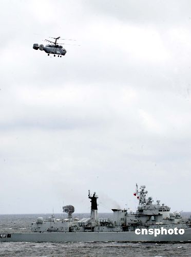 “飛赴某海區(qū)執(zhí)行艦機(jī)協(xié)同任務(wù)!”“明白!”劉進(jìn)坤從容應(yīng)答。戰(zhàn)機(jī)在甲板上空懸停、轉(zhuǎn)向。隨后前傾,大速度前出,飛離112艦。高速下沉的氣流在海上吹開了一個(gè)很大的旋渦,隨著直升機(jī)前進(jìn)而緩緩移動(dòng)。這時(shí),從俄羅斯海軍“沙波什尼科夫海軍元帥”號(hào)反潛艦上起飛的卡-27型直升機(jī)也離開了載艦并很快進(jìn)入航線,朝直-九跟進(jìn)。不一會(huì)兒,兩架直升機(jī)在預(yù)定海區(qū)組成編隊(duì),一前一后、一高一低,像兩只上下翻飛的蝴蝶,讓人賞心悅目。