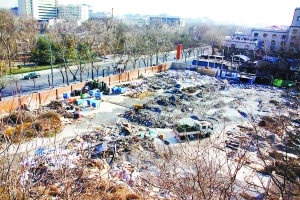 周先生說(shuō),昨天他路過(guò)這里時(shí),看到這片空地有一扇大門(mén)敞開(kāi)著,他近前看到約上千平方米的空地上,到處堆放著渣土、居民垃圾等雜亂物,“很難相信在市中心還有這樣的地方,這與王府井地區(qū)的繁華很不相稱!敝芟壬f(shuō)。