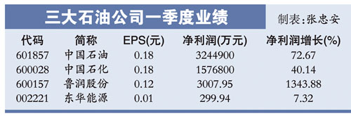中信證券石化行業(yè)首席分析師殷孝東說,一季度中石油業(yè)績(jī)?cè)鲩L(zhǎng)主要受益于國(guó)際油價(jià)的上漲;而中石化則更依賴于化工和銷售板塊業(yè)績(jī)的上升。