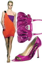 回顧上世紀(jì)80年代的時(shí)尚潮流,自由、開放、眼花繚亂、略帶點(diǎn)頹廢,最明顯的標(biāo)志莫過于色彩的沖撞。那個(gè)年代幾乎將所有的色彩都聚在了一起,對(duì)比色、跳躍色、熒光色等?傊切┘兌绕叩纳士偸悄芙o人帶來視覺刺激的愉悅和個(gè)人感情釋放的快感。于是,有了Isabella Fiore的“Love”綠色挎包;L.A.M.B的橙色和綠色拼合運(yùn)動(dòng)茄克;Marc Jacob的黃色露趾平底鞋;Nike的多色相拼運(yùn)動(dòng)連衣裙;Sonia Rykiel的黑白對(duì)比色視幻大手鐲……