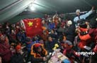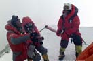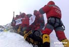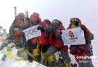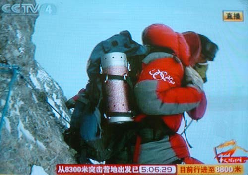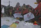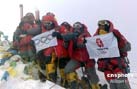 北京奧運圣火成功今天上午9時許登上珠峰,登山隊員們在峰頂進行了火炬接力,接力活動結(jié)束后,隊員們在世界之巔展示熊熊燃燒的祥云火炬以及中國國旗、奧運五環(huán)旗和北京奧運會會徽旗。