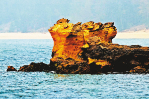 “一半是火焰,一半是海水”。位于儋州峨蔓港的“龍門激浪”,是100萬年前火山噴發(fā)后在海岸線形成的火山巖奇觀。北風(fēng)掀浪,撞于石門,鳴聲如鼓,回響不絕。雖然經(jīng)過100萬多年海水的沖刷,但從火山石千奇百怪的形態(tài)和大面積的擴(kuò)散、分布中,還是能明顯感覺到火山爆發(fā)時,巖漿迸裂和大規(guī)模流動的痕跡,令人感嘆地質(zhì)運(yùn)動中大自然的神工和壯觀。